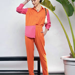 Women Orange & Pink Colo Block Shirt With Darted Pants