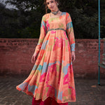 Women Orange Tie & Dye Back Criss Cross Dori Anarkali Kurta