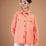Women Orange Washed Denim Shacket