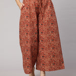 Rust Printed Wide Legged Printed Palazzo With Side Pockets
