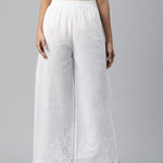 Cotton Fabric White Color Regular Fit Palazzos With Chikankari Work