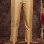 Gold Poly Silk Solid Slim Fit Pant/Slim Pant