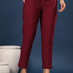 Burgundy Cotton Flex Solid Slim Fit Pant/Slim Pant
