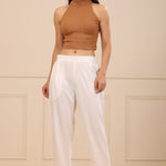 White Rayon Staple Solid Straight Pant/Slim Pant