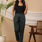 Jade Green Solid Lycra Women Drawstring Pants With Single Side Pocket