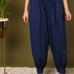 Blue Cotton Solid Harem Pants