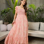 Women Peach Ditsy Floral Square-Neck Maxi Dress