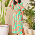 Peach Floral Side Cut-Out Midi Dress, in Heavy Georgette fabric, Slit At Sides, , Woven, Flared, Fabric: Heavy Georgette Hemline and features Slit At Sides