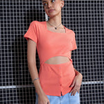 Women Peach Rib Waist Cut-Out Top