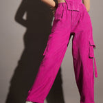 Pink Corduroy Multi Pocket Cargo Pants, in Corduroy fabric, Unlined, Full Length , Loose fit , Button Closure, Straight Hemline and features Box Pocket Detail At Side