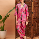 Women Pink Floral Blazer With Straight Pants