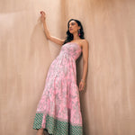 Pink Floral Tube Maxi, in Cotton Cambric fabric, Cotton Voile, Maxi Length, Fit & Flare, No Closure, Flared Hemline and features Smocking Detail At Chest