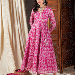 Women Pink Floral Wrap Anarkali Dress