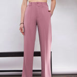 Pink Front Darted Knitted Straight Pants, in Canton Knit fabric, Unlined, Full Length , Straight Fit, Button Closure, Straight Hemline and features Front Dart Detail