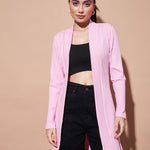 Pink Full Sleeves Rib Shrug, in Cotton Rib fabric, Unlined, , Regular Fit, No Closure, Straight Hemline and features Front Open Pattern