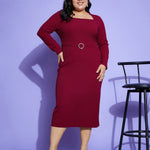 Pink Glitter Side Slit Belted Midi Dress, in Glitter Karera fabric, Unlined, Knee Length, Slim Fit, Zipper Closure, Straight Hemline and features Mock Belt Detail At Waist