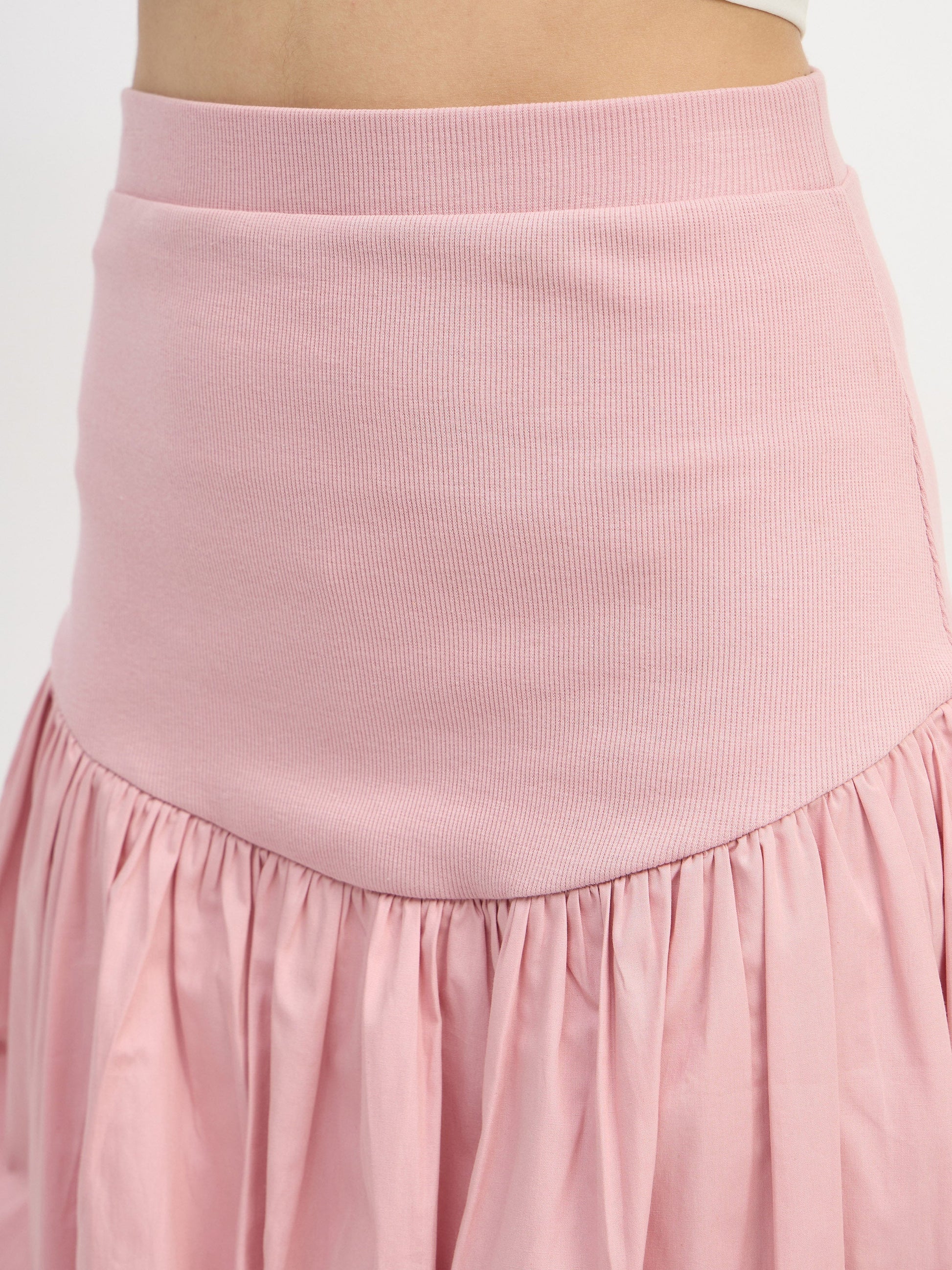 Pink Rib Balloon Hem Mini Skirt, in Rib fabric, Poly Knit Lining, Above Knee, Comfort Fit, NA, Straight Hemline and features Self Design