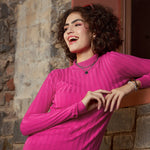 Women Pink Rib Full Sleeves High Neck Sweater