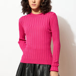 Women Pink Rib Full Sleeves High Neck Sweater
