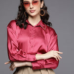 Pink Satin Longline Shirt , in Satin fabric, Unlined, Longline, Comfort Fit, Button Closure, Straight Hemline and features Diamante Chain Detail At Collar