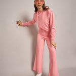 Pink Terry Regular Hoodie With Terry Pants, in Terry fabric, Unlined, Regular Length, Comfort Fit, No Closure, Straight Hemline and features Drawsting At Hood