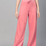 Women Pink Terry Wide Leg Drawstring Pants
