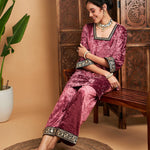 Women Pink Velvet Embroidered Short Kurta With Pants