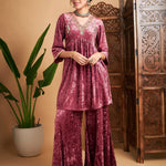Women Pink Velvet Embroidered Top With Palazzos