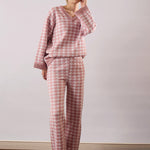 Women Pink & White Houndstooth V-Neck Sweater With Joggers