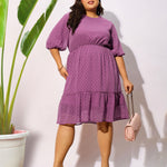 Women Purple Dobby Puff Sleeve Skater Dress