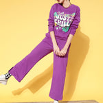 Women Purple Fleece JUST CHILL Sweatshirt With Track Pants