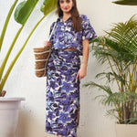 Women Purple Floral Crop Shirt With Side Ruched Maxi Skirt