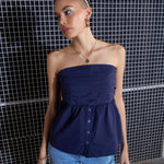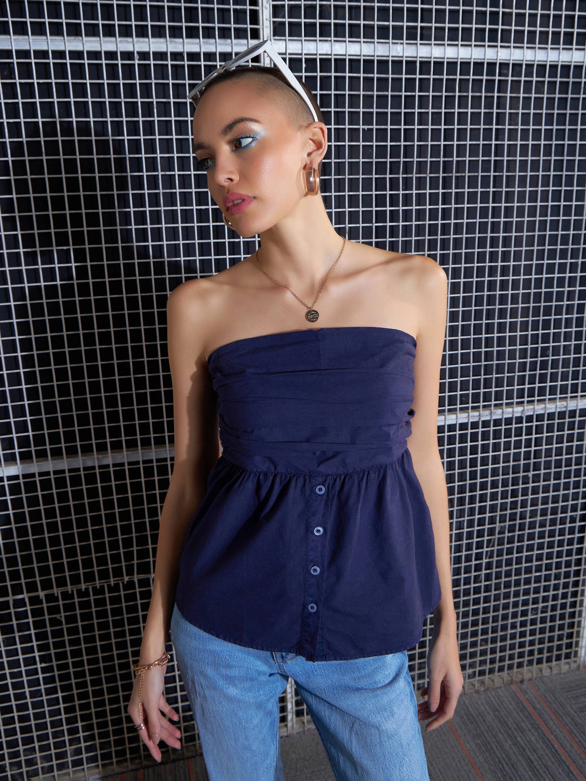 Purple Poplin Back Smoked Tube Top, in Poplin fabric, Casual, Regular Length, Button Closure, Unlined, Gather At Chest Hemline and features NA