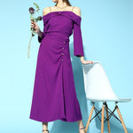 Purple Side Slit Ruched A-Line Skirt, in Poly Moss fabric, Unlined, Ankle Length , Comfort Fit, Elasticated Waistline, Flared Hemline and features Slit At Side