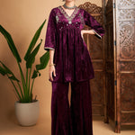 Women Purple Velvet Embroidered Top With Palazzos