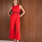 Red Belted Jumpsuit , in Canton fabric, Unlined , Full Length, Slim Fit, Zipper Closure, Straight Hemline and features Belt Detail At Waist