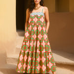 Red Floral Strappy Smocked Maxi Dress, in Cotton Cambric fabric, Cotton Voile, Maxi Length, Fit & Flare, No Closure, Flared Hemline and features Smoking Detail At Back