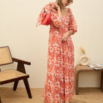 Red Floral Sweetheart Neck Maxi Dress, in Georgette fabric, Polyknit Lining, Below Knee, Fit & Flare, Slip On , Flared Hemline and features Smocking At Back Bust