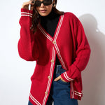 Red Front Button Oversized Cardigan , in Acrylic fabric, Unlined, Regular Length, Comfort Fit, Button Closure, Straight Hemline and features Button Detail At Front