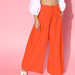 Red High Waist Wide Leg Pants, in Cotton Flex fabric, Unlined, Full Length, Comfort Fit, Zipper Closure, Flared Hemline and features Extra Wide Leg Flare
