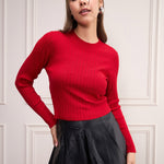 Red Rib Full Sleeves High Neck Sweater, in Viscose Nylon Rib fabric, Unlined, Regular Length, Slim Fit, No Closure, Straight Hemline and features Self Ribbed Design