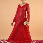 Women Red Sequence Sweetheart Neck Anarkali Dress