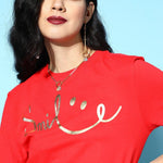 Red SMILE Regular Fit T-Shirt, in Cotton Jersey fabric, Unlined, Regular Length , Comfort Fit, No Closure, Straight Hemline and features SMILE Foil Print At Front