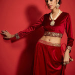 Red Velvet Square Neck Crop Top, in Velvet fabric, Unlined , Crop Length, Comfort Fit, Zipper Closure, Straight Hemline and features Lace Detail At Waist & Sleeves