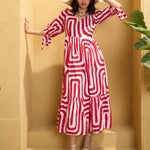 Red & White Back Cut-out Knot Maxi Dress, in Cotton Cambric fabric, Cotton Voile, Maxi Length, Fit & Flare, No Closure, Flared Hemline and features Tie Knot Detail At Back & Sleeves