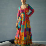 Red & Yellow Multi Color Side Cut Out Anakali Kurta, in Georgette fabric, Butter Crepe Lining, Maxi Length, Fit & Flare / Comfort Fit, Drawstring Closure, Flared Hemline and features Side Cut Detail At Waist