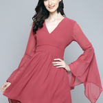 Rose Pink Boho Sleeve Skater Dress , in Georgette fabric, Polyknit , Knee Length, Fit & Flare, Zipper Closure, Flared Hemline and features Asymmetric Sleeves