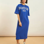 Women Royal Blue BOSTON Printed T-Shirt Dress