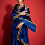 Royal Blue Embroidered Dushala, in Velvet fabric, Unlined, , Comfort Fit, No Closure , Straight Hemline and features Embroidery And Lace Detail At All Round