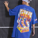 Women Royal Blue FUN Printed Oversized T-Shirt Dress